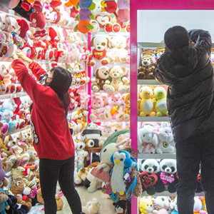 義烏市中國小商品城經(jīng)過(guò)春節假期的休整后重新開(kāi)市營(yíng)業(yè),這是經(jīng)營(yíng)戶(hù)整理貨架(2月12日攝)。新華社記者 江漢 攝