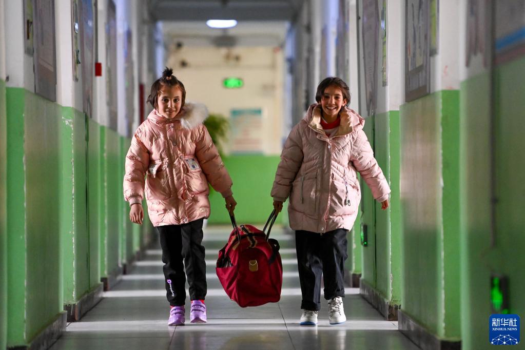 在新疆塔什庫爾干塔吉克自治縣城鄉寄宿制小學(xué),返校的學(xué)生走入宿舍樓(2月25日攝)。新華社記者 丁磊 攝