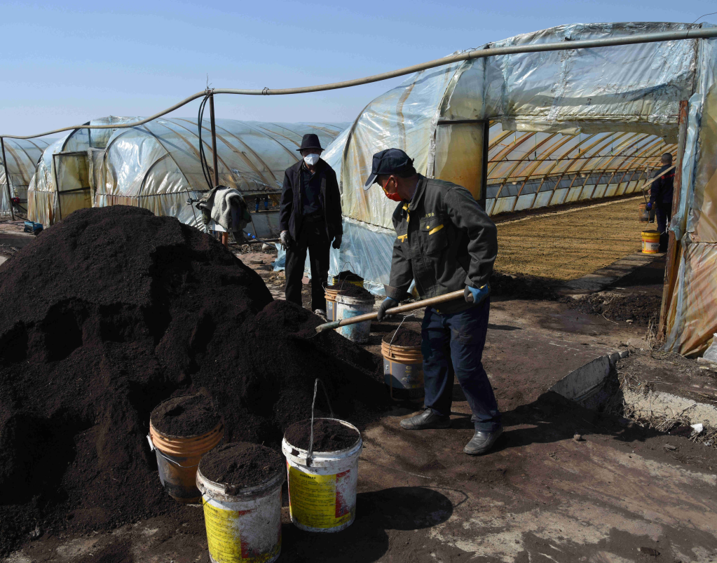 4月2日,在五常市友好村烏拉巴街屯,村民正在將土運進(jìn)大棚。新華社記者梁書(shū)斌攝