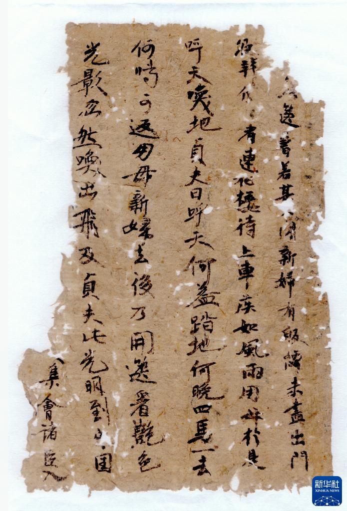 克亞克庫都克烽燧遺址出土的《韓朋賦》殘片(資料照片)。新華社發(fā)(新疆文物考古研究所供圖)