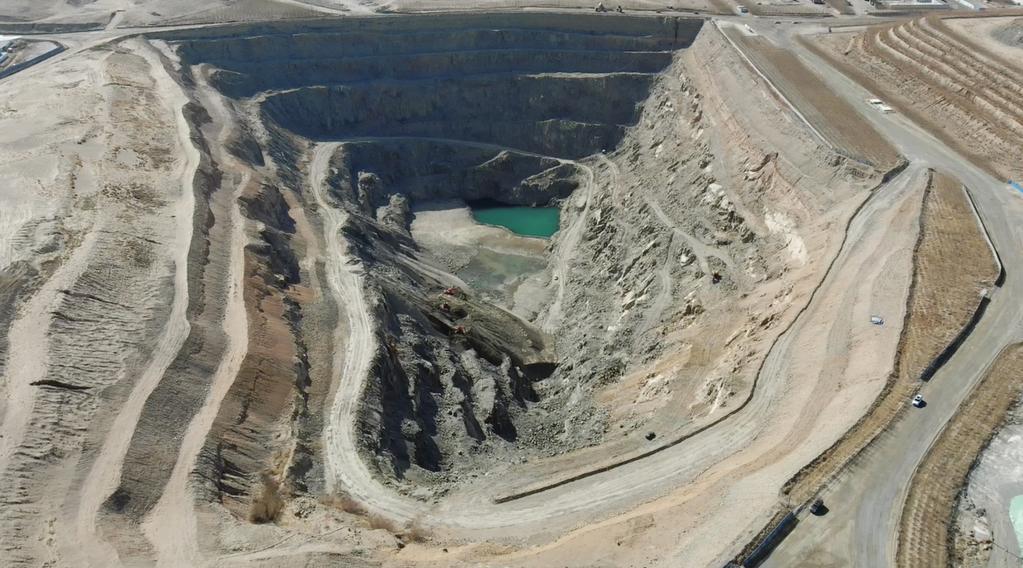 生金礦業(yè)公司公忽洞鐵礦深達97米的越界采坑(無(wú)人機照片)。新華社記者 恩浩 2022年3月27日攝