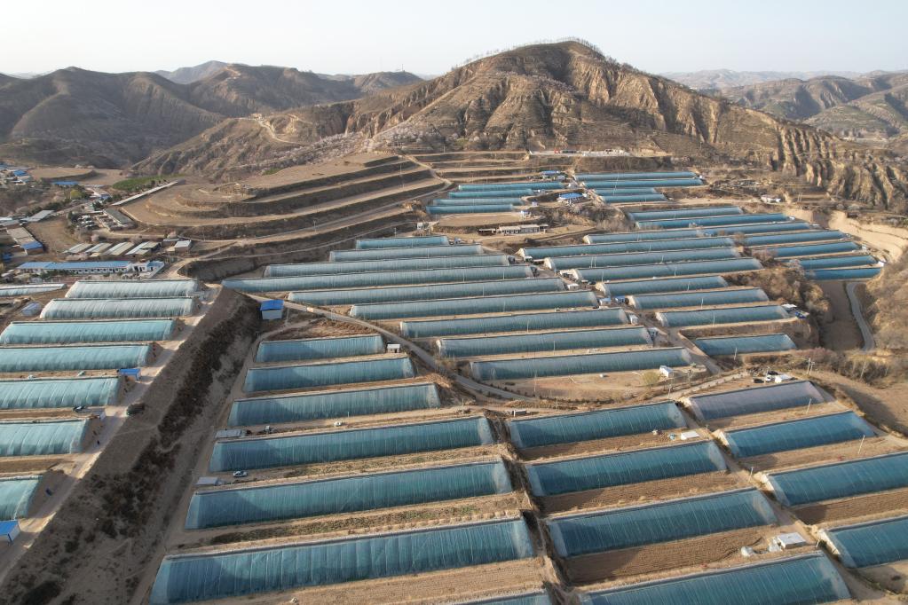 延安市安塞區化子坪鎮張岔村的大棚種植基地(無(wú)人機照片)。新華社記者邵瑞 攝