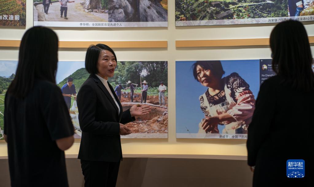 “全國三八紅旗手”、蚌谷鄉海子壩村村民小組原組長(cháng)謝成芬確診乳腺癌后,依然帶領(lǐng)群眾治理被稱(chēng)為“地球癌癥”的石漠化,讓村里路通了、電通了、核桃掛果了。如今,她在“西疇精神”展覽館里工作,現身說(shuō)法講述治理石漠化的故事。