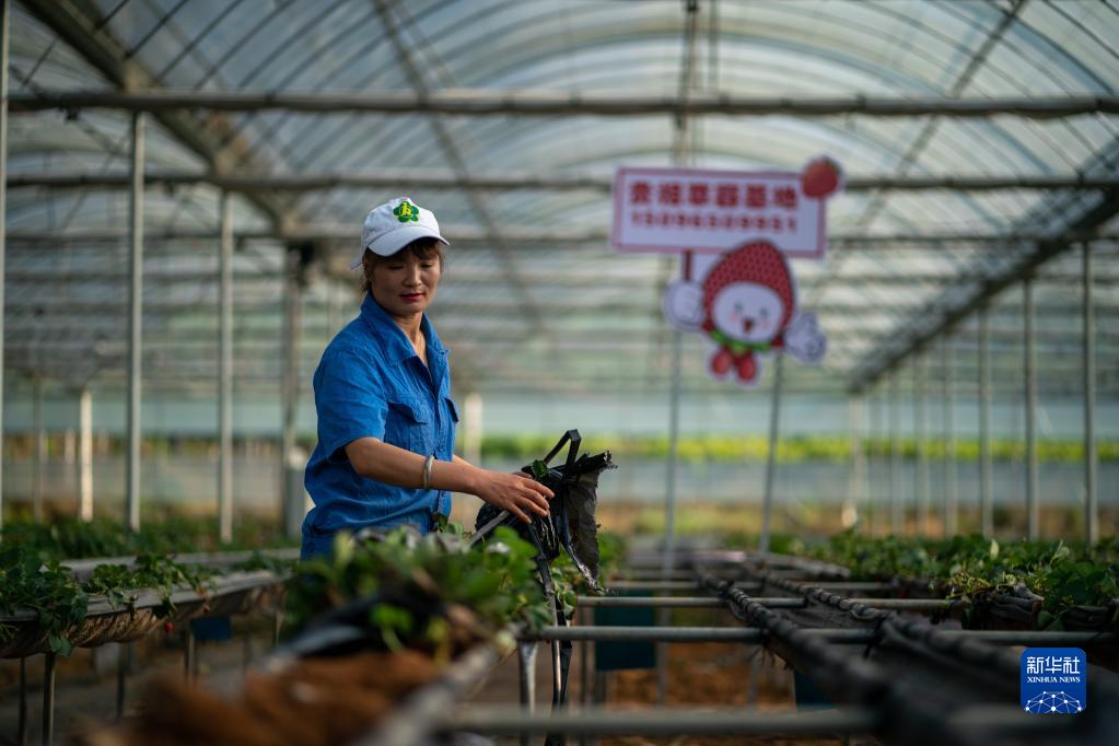 “逐夢(mèng)亭”下,有6畝上海市虹口區援建的溫室大棚,無(wú)土栽培的草莓?huà)赡奂t艷,這是堅毅剛強的西疇“草莓?huà)寢尅睆堎F相的新基地。