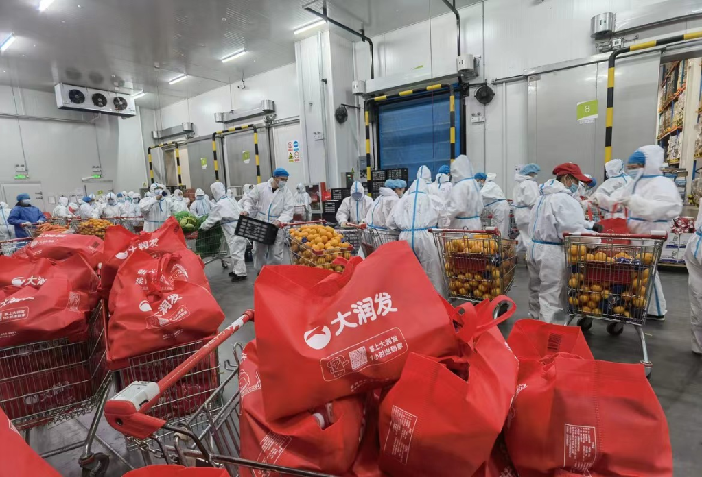在大潤發(fā)上海華漕店,被分揀打包好的商品正在等待配送。受訪(fǎng)對象供圖