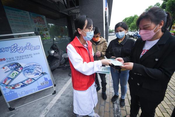 4月28日,在浙江湖州龍泉街道祥和社區幸福鄰里中心,龍泉街道社區衛生服務(wù)中心的醫生志愿者向人們發(fā)放職業(yè)病防治法宣傳手冊,普及健康知識。新華社記者 徐昱 攝