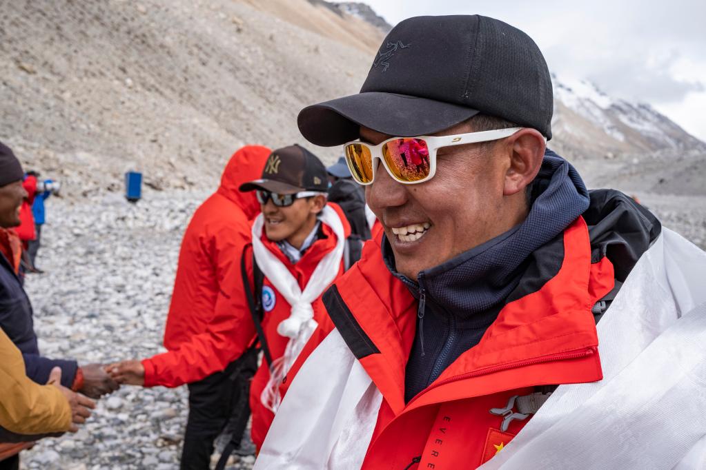 2022年5月5日,珠峰科考登頂工作小組組長(cháng)德慶歐珠返回大本營(yíng)。