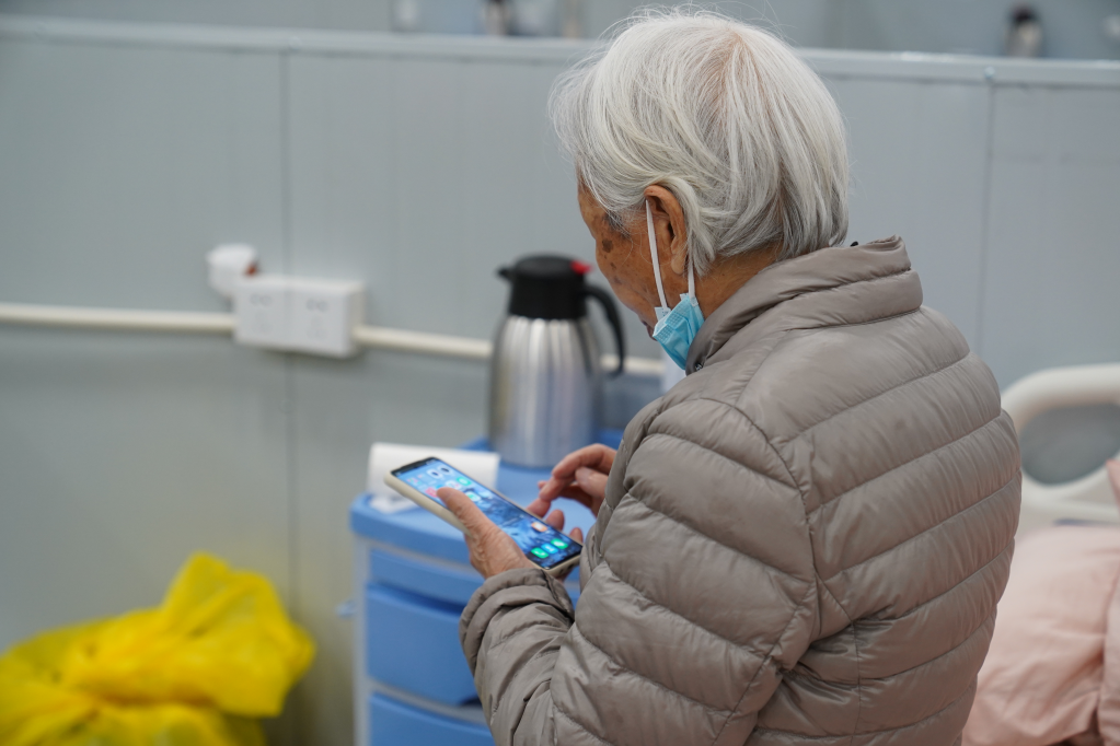 王漫如老人在方艙醫院休息。新華社記者 楊有宗 攝