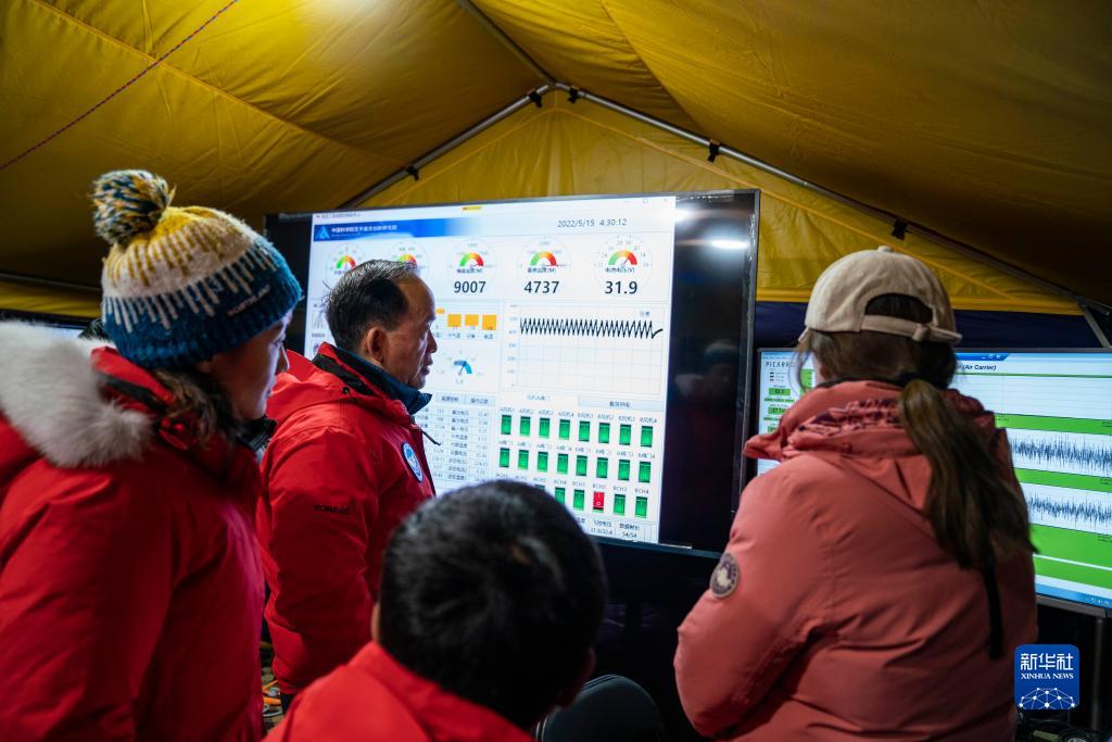 5月4日,德慶歐珠帶領(lǐng)的登頂小組科考隊員,在珠峰海拔8830米處架設世界海拔最高自動(dòng)氣象站,建成珠峰梯度氣象觀(guān)測體系;在峰頂首次利用高精度雷達測量冰雪厚度,并采集了峰頂冰雪樣品。