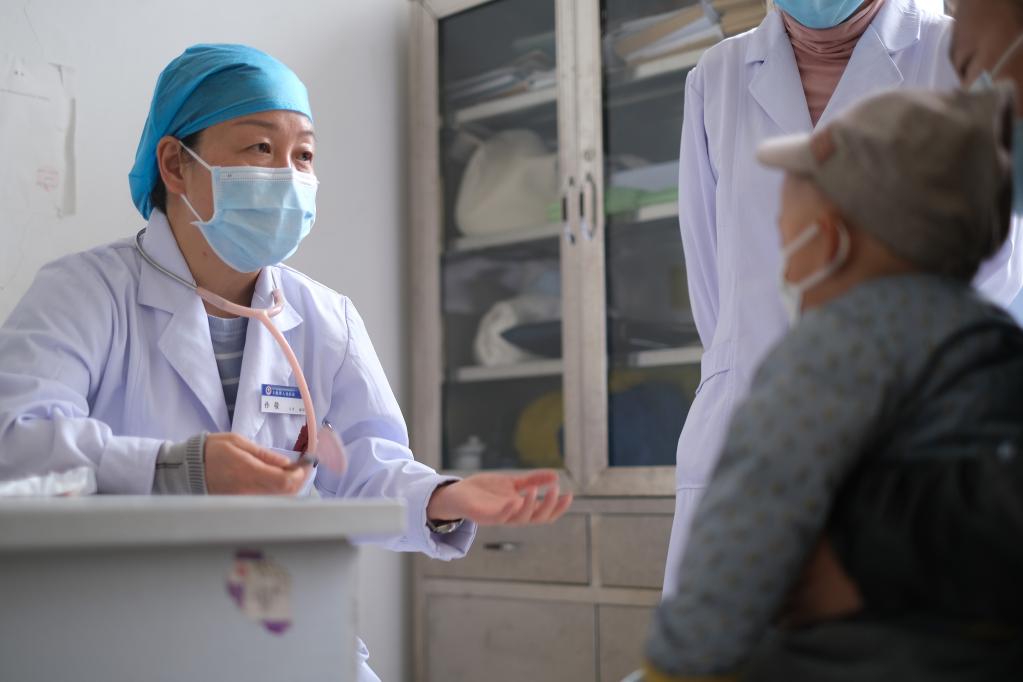 4月25日,青海省婦女兒童醫院醫生、青南支醫隊員孫敬(左一)在青海省玉樹(shù)藏族自治州人民醫院兒科門(mén)診坐診。(新華社記者韓方方 攝)