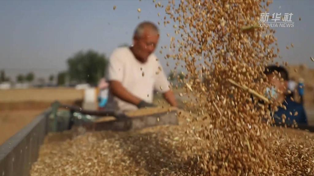 一車(chē)車(chē)帶著(zhù)麥香的新麥從收割機的“肚子”裝到車(chē)上,從地頭駛向糧倉。