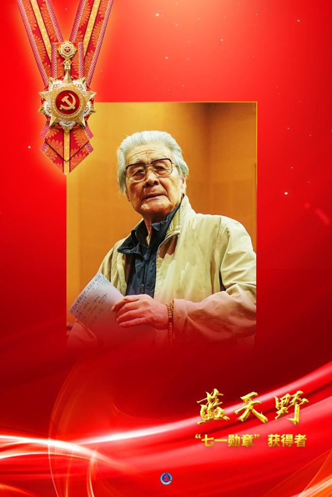 2021年6月29日,央視實(shí)時(shí)轉播的“七一勛章”頒授儀式上,一身深色西服,打著(zhù)領(lǐng)帶,神采奕奕的藍天野走下禮賓車(chē),坐上輪椅進(jìn)入神圣莊嚴的人民大會(huì )堂。
