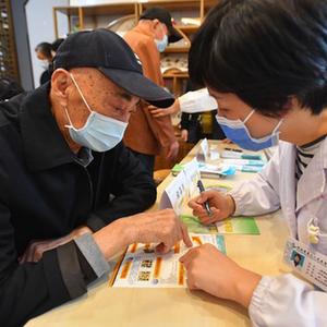 2021年10月14日,在長(cháng)沙市天心區金盆嶺街道赤嶺路社區文化活動(dòng)中心,醫務(wù)人員為老年人解答健康問(wèn)題。新華社記者 陳澤國 攝