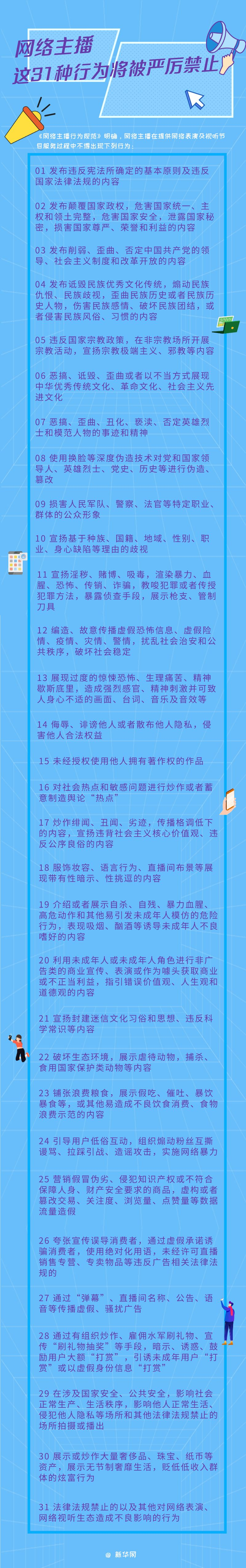 網(wǎng)絡(luò )主播這31種行為將被嚴厲禁止