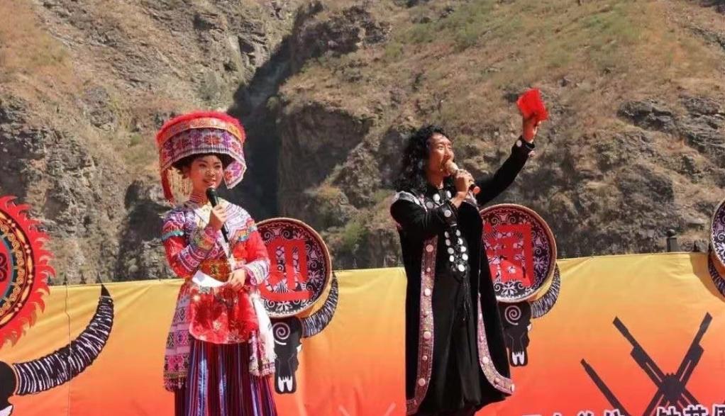2018年2月25日,在云南省大理白族自治州賓川縣鐘英傈僳族彝族鄉易地扶貧搬遷安置點(diǎn)舉行的傈僳族傳統節日闊時(shí)節上,谷文瑾(左)擔任活動(dòng)主持人。(受訪(fǎng)者供圖)