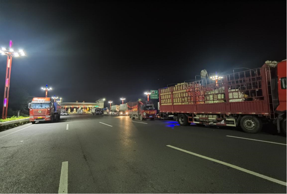 3日凌晨,在鹽洛高速泗縣收費站,不時(shí)有運送礦泉水、蔬菜、方便面等物資的車(chē)輛進(jìn)入泗縣。除了必要的疫情防控車(chē)輛,路上幾乎見(jiàn)不到其他車(chē)輛。