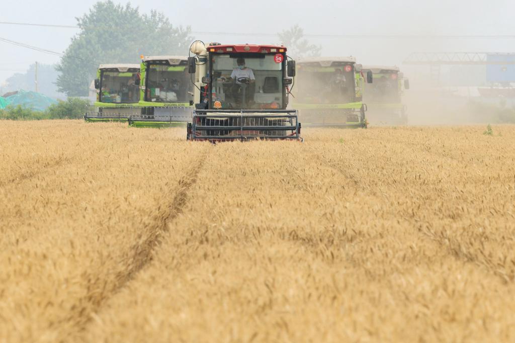 6月21日,河北省唐山市豐南區大新莊鎮大佟莊村,農機手駕駛收割機搶收小麥。新華社發(fā)(李秀清攝)