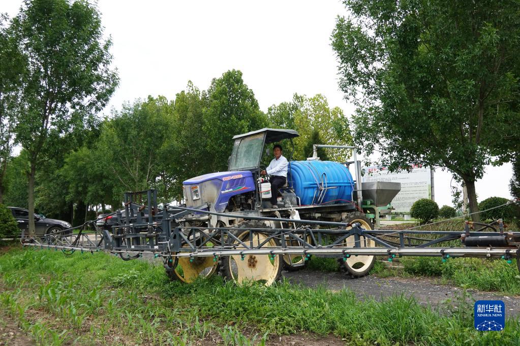 7月7日,安徽省蚌埠市懷遠縣種糧大戶(hù)尚躍駕駛大型植保機在田間噴灑農藥。新華社發(fā)