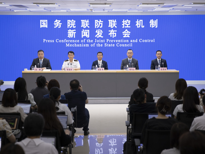 7月8日,國務(wù)院聯(lián)防聯(lián)控機制就科學(xué)精準做好疫情防控工作有關(guān)情況舉行發(fā)布會(huì )。新華社發(fā)(楊佳 攝)
