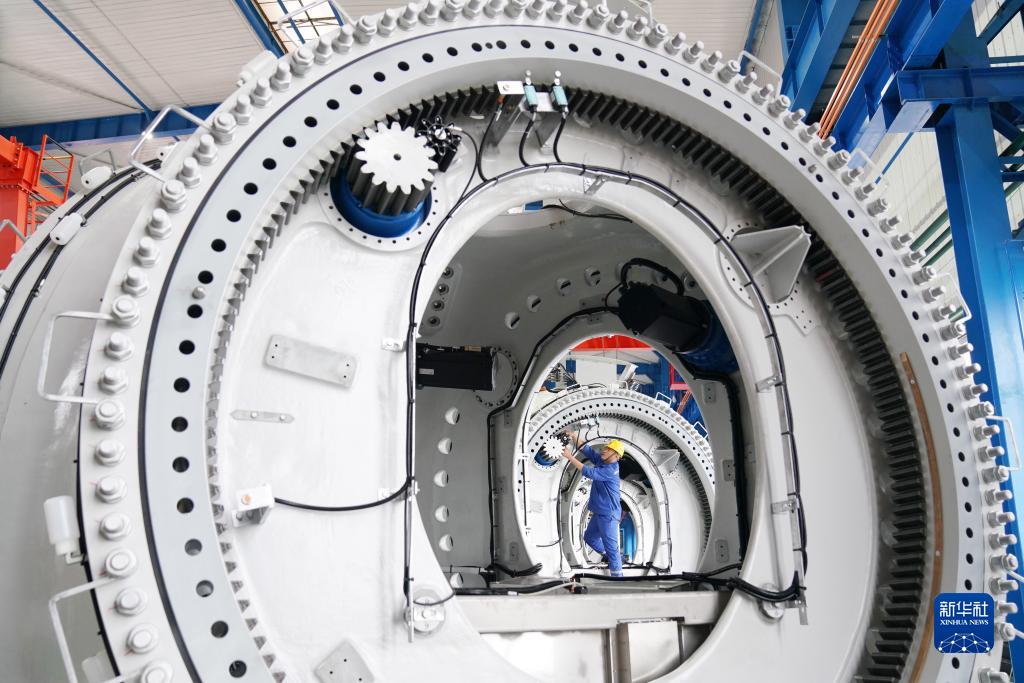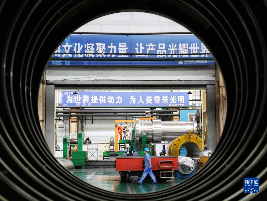 在哈電集團哈爾濱電機廠(chǎng)有限責任公司車(chē)間,工人進(jìn)行生產(chǎn)作業(yè)(2022年6月27日攝)。新華社記者 王建威 攝