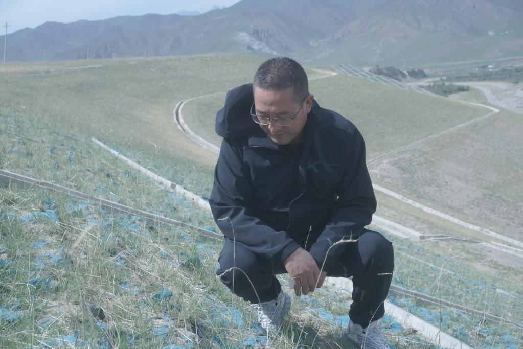 6月16日,祁連縣山水林田湖試點(diǎn)項目辦公室干部楊富存正在小八寶河河畔查看治理成效。新華社記者 周盛盛 攝