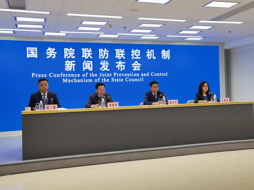 國務(wù)院聯(lián)防聯(lián)控機制新聞發(fā)布會(huì )現場(chǎng)。新華社記者 宋晨 攝