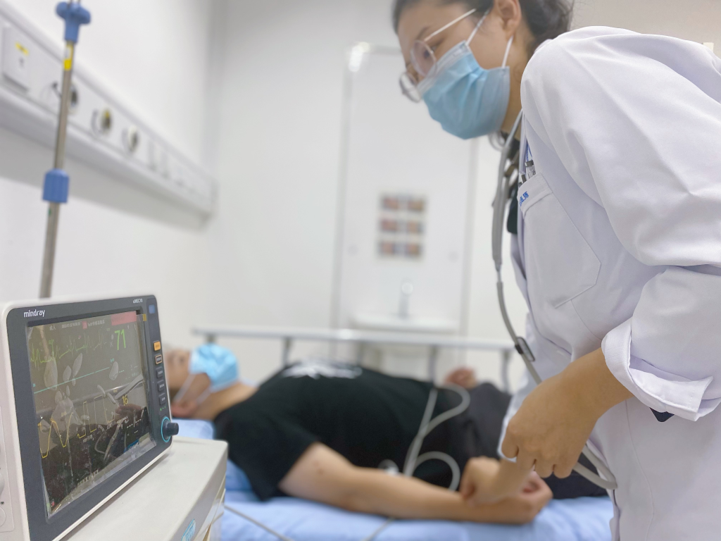 成都市第三人民醫院心血管內科醫生正在給一位年輕患者測量心率。受訪(fǎng)者供圖