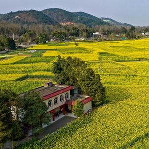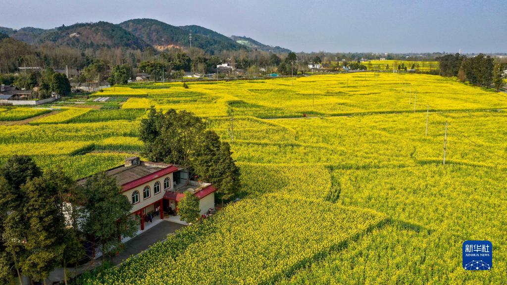在四川成都崇州市拍攝的油菜花田(2020年2月25日攝,無(wú)人機照片)。新華社記者 王曦 攝