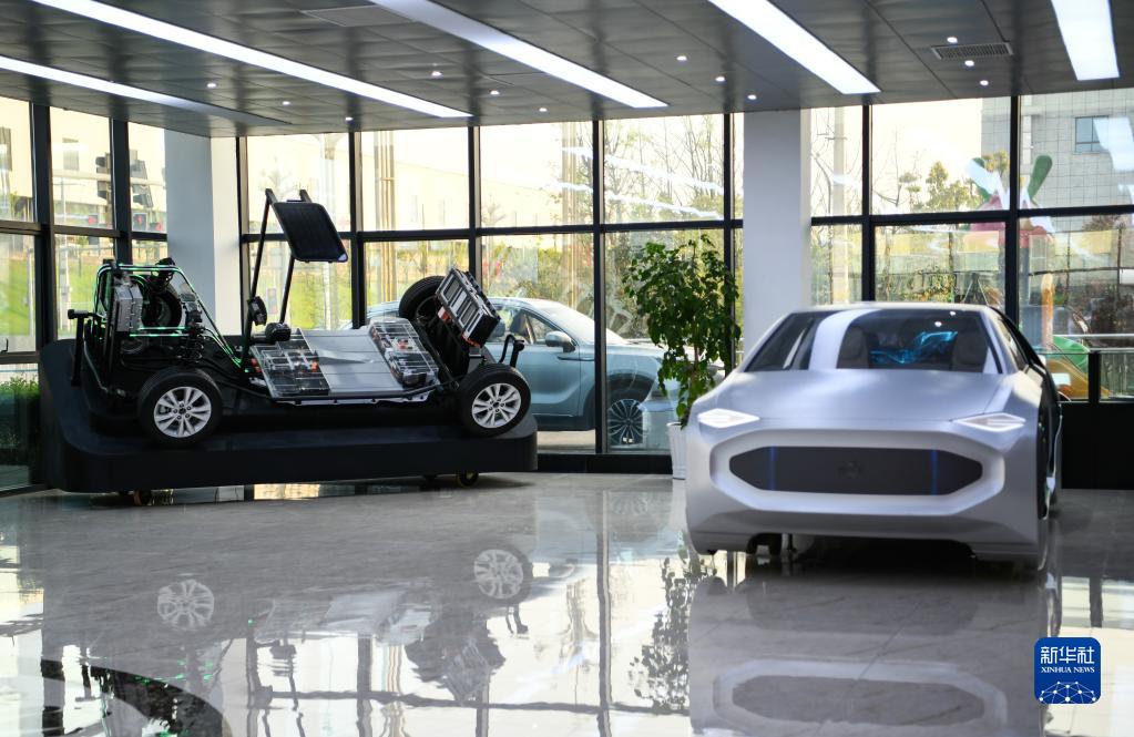 在四川省廣安市鄰水縣川渝高竹新區一家企業(yè)展廳內拍攝的展車(chē)(2021年3月24日攝)。新華社記者 王曦 攝