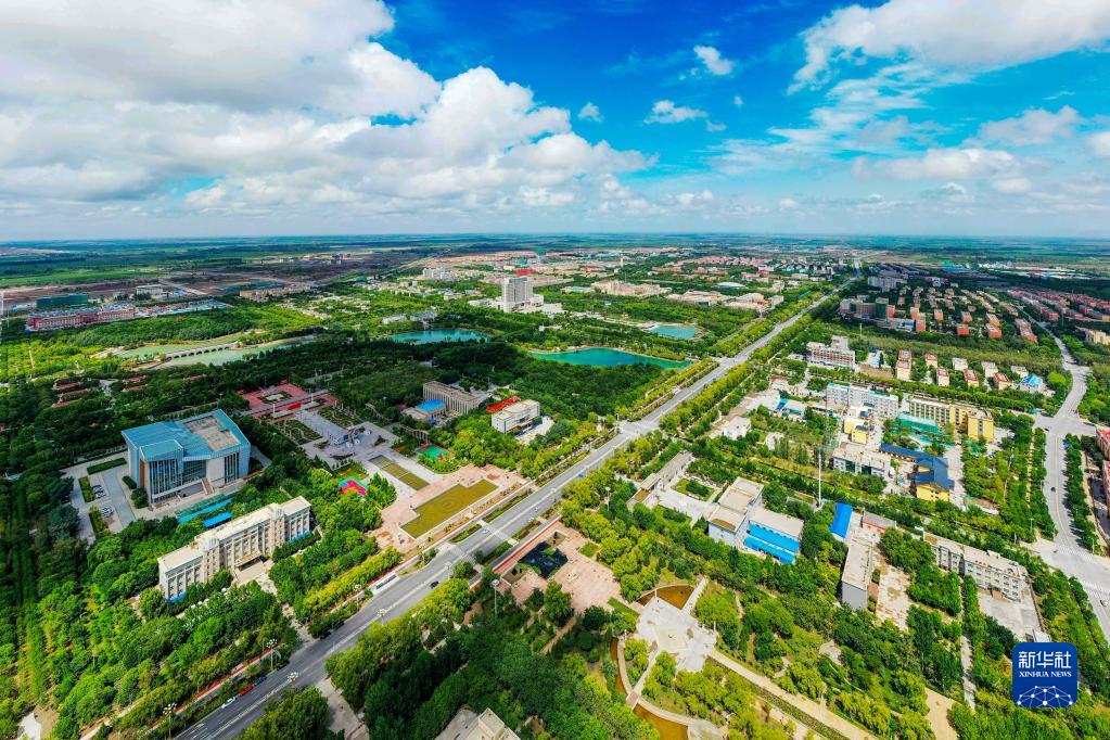這是2021年7月22日拍攝的新疆生產(chǎn)建設兵團第三師圖木舒克市(無(wú)人機照片)。新華社發(fā)(王俊龍 攝)