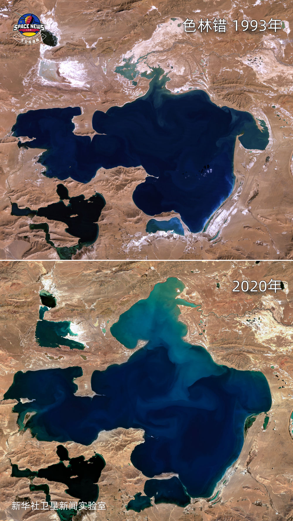 岡底斯山北麓的色林錯湖是中國第三大咸水湖,近年由于冰川融水補給量增加,湖泊面積不斷擴大,特別是湖區北部、東南部、南部區域。