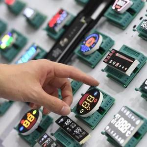 8月16日,觀(guān)眾在第十屆中國電子信息博覽會(huì )上參觀(guān)數碼管顯示屏。新華社記者 毛思倩 攝