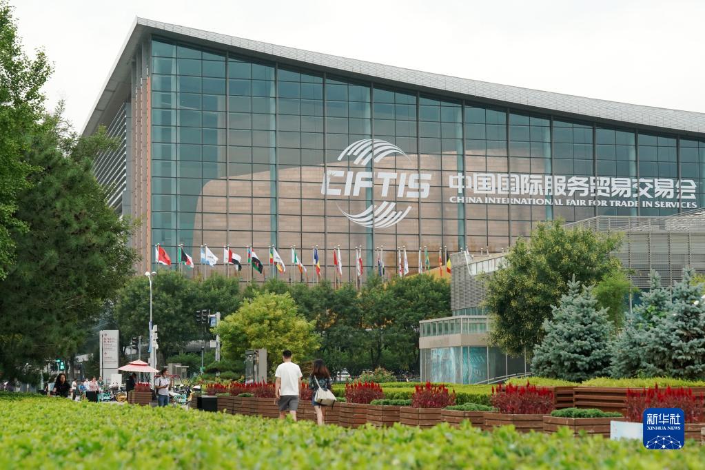 這是8月28日在國家會(huì )議中心拍攝的2022年中國國際服務(wù)貿易交易會(huì )會(huì )場(chǎng)外景。新華社記者 張晨霖 攝