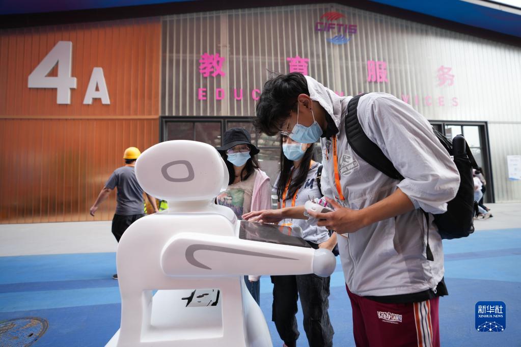 8月29日,工作人員在服貿會(huì )首鋼園區調試智能導覽交互機器人。新華社記者 鞠煥宗 攝