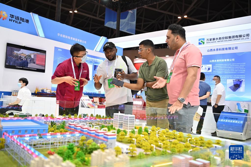 9月2日,中外參展商在2022中國(太原)國際能源產(chǎn)業(yè)博覽會(huì )上交流。新華社記者 楊晨光 攝