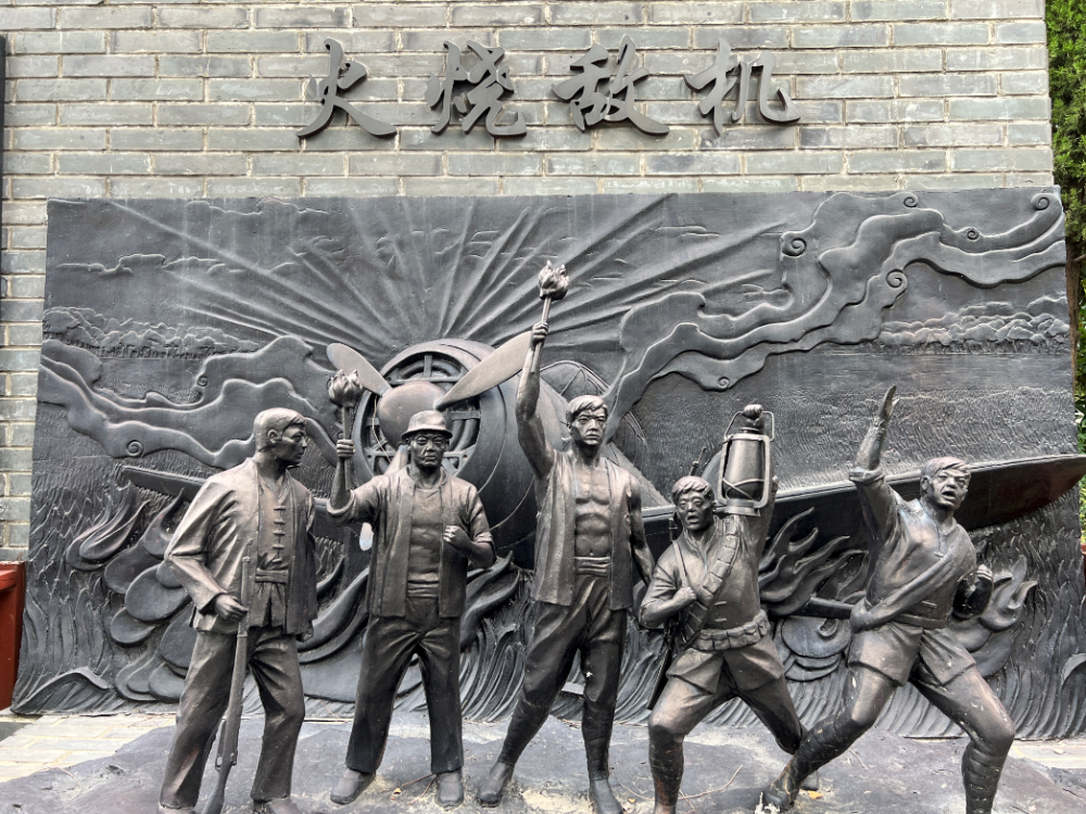 外岡抗日游擊隊火燒日軍飛機雕塑。新華社記者 潘旭 攝