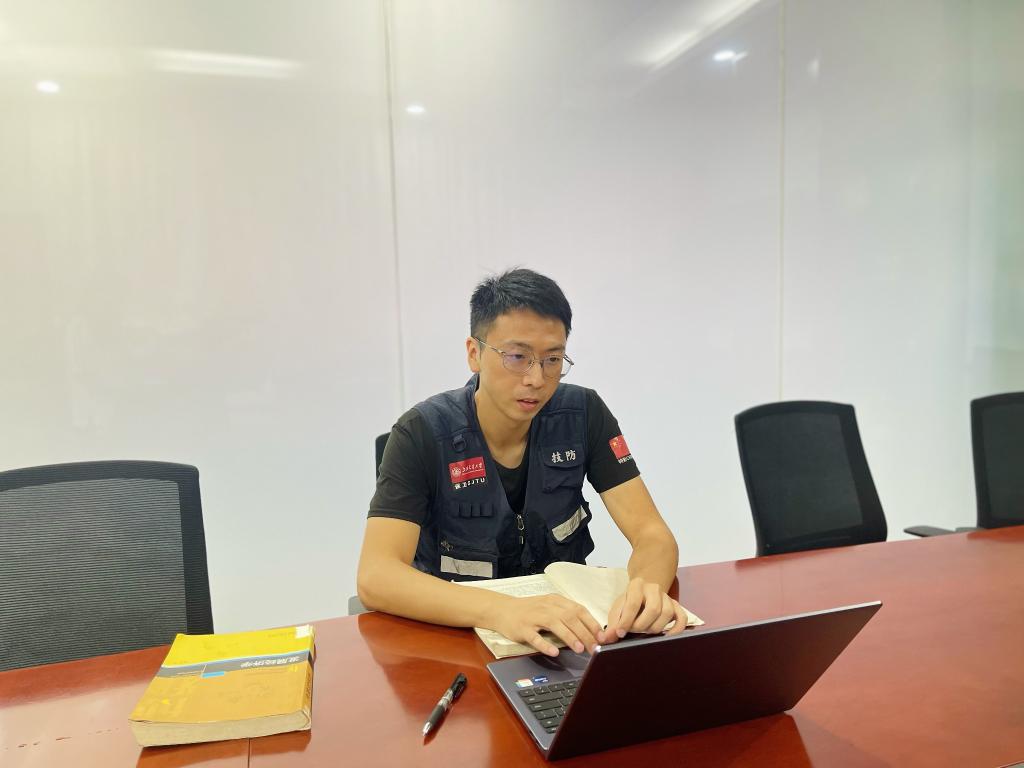 在蔣家杰工作的辦公室,桌上時(shí)常擺放著(zhù)書(shū)本和電腦,在工作之余抽空學(xué)習的習慣延續至今?!吧暇W(wǎng)課前爭取多積累點(diǎn)專(zhuān)業(yè)知識,畢竟研究生跨專(zhuān)業(yè)了?!笔Y家杰說(shuō)。