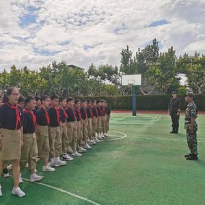 9月3日,高帥旗(右一)入學(xué)后被借調至上海一所中學(xué)帶中學(xué)生軍訓。受訪(fǎng)者供圖