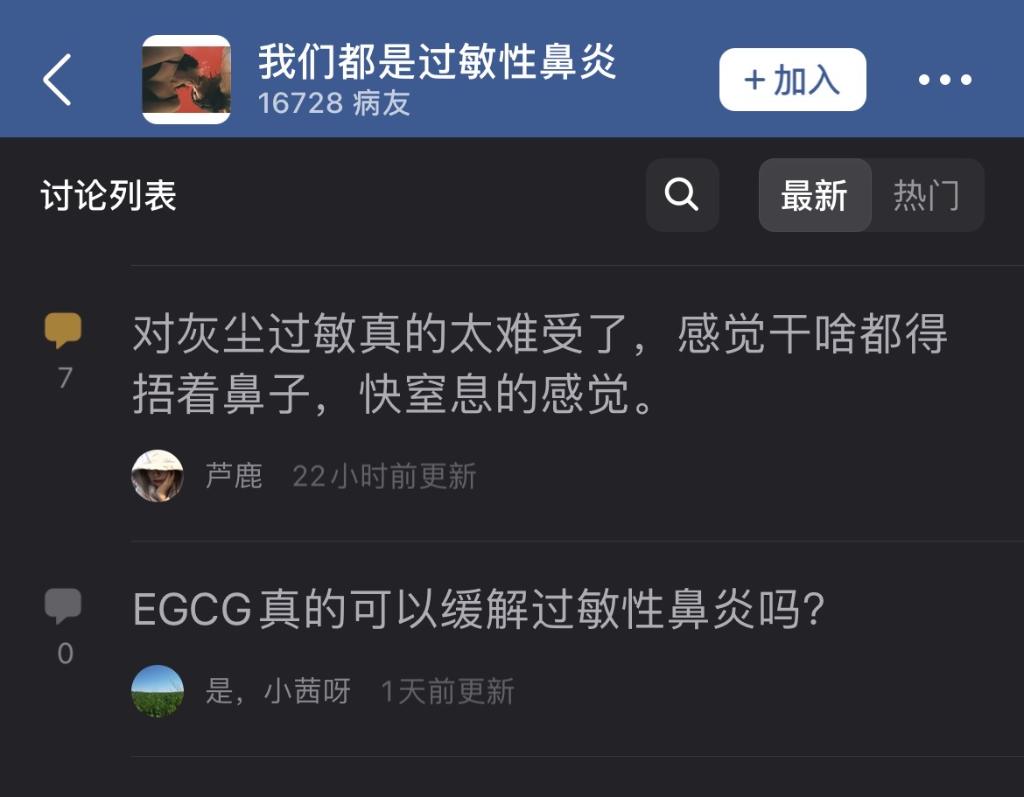 圖為豆瓣小組“我們都是過(guò)敏性鼻炎”已有1.6萬(wàn)余名病友。(豆瓣截圖)