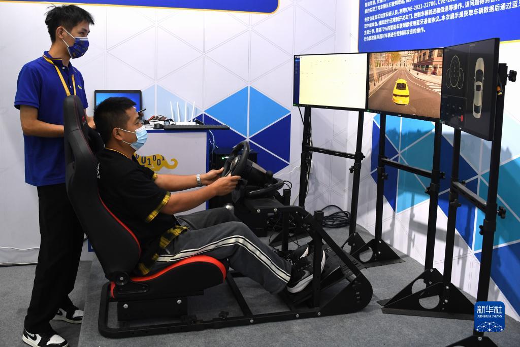 9月4日,一家參展企業(yè)代表在2022年國家網(wǎng)絡(luò )安全宣傳周網(wǎng)絡(luò )安全博覽會(huì )上演示使用車(chē)載網(wǎng)絡(luò )安全科技產(chǎn)品。新華社記者 劉軍喜 攝