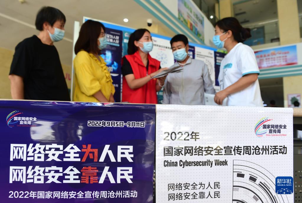 9月6日,在河北省滄州市婦幼保健院,網(wǎng)絡(luò )安全宣傳志愿者向人們宣傳網(wǎng)絡(luò )安全與日常生活的關(guān)系。新華社記者 王民 攝