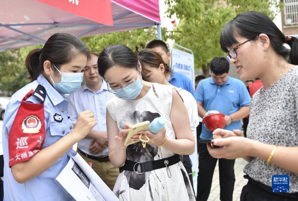 9月9日,在安徽省合肥市廬陽(yáng)區大楊鎮舉辦的2022年國家網(wǎng)絡(luò )安全宣傳周網(wǎng)絡(luò )安全進(jìn)社區活動(dòng)上,民警為居民介紹防詐騙知識。新華社發(fā)(葛傳紅 攝)