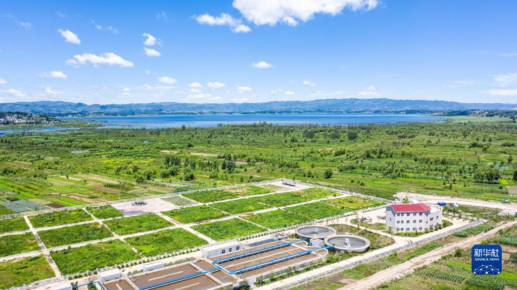 這是貴州草海國家級自然保護區的萬(wàn)噸生活污水處理廠(chǎng)(2019年6月20日攝,無(wú)人機照片)。新華社記者 陶亮 攝