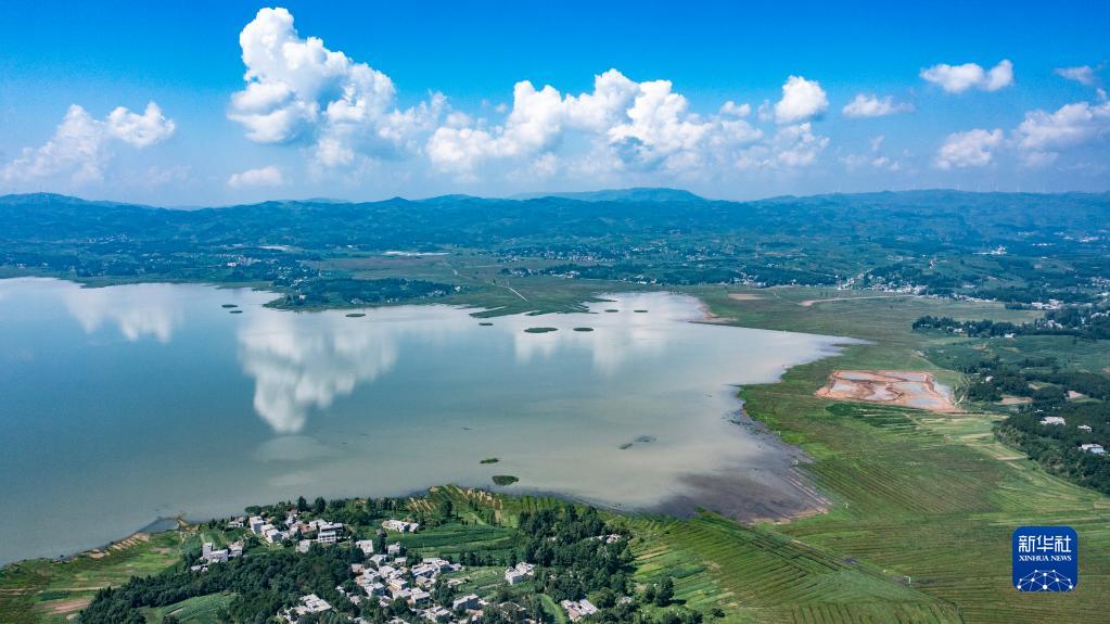 貴州草海國家級自然保護區,退耕還湖成效明晰可見(jiàn)(2022年7月8日攝,無(wú)人機照片)。新華社記者 陶亮 攝