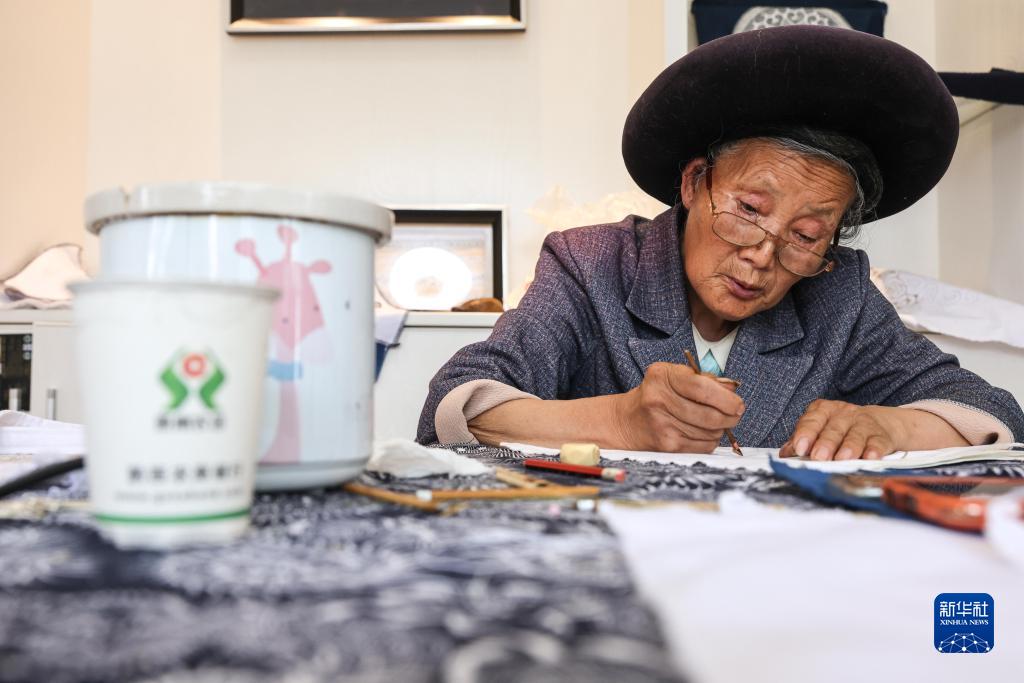 村民在貴州省黔西市新仁鄉化屋村蠟染車(chē)間內制作蠟染(2022年6月1日攝)。新華社記者 歐東衢 攝