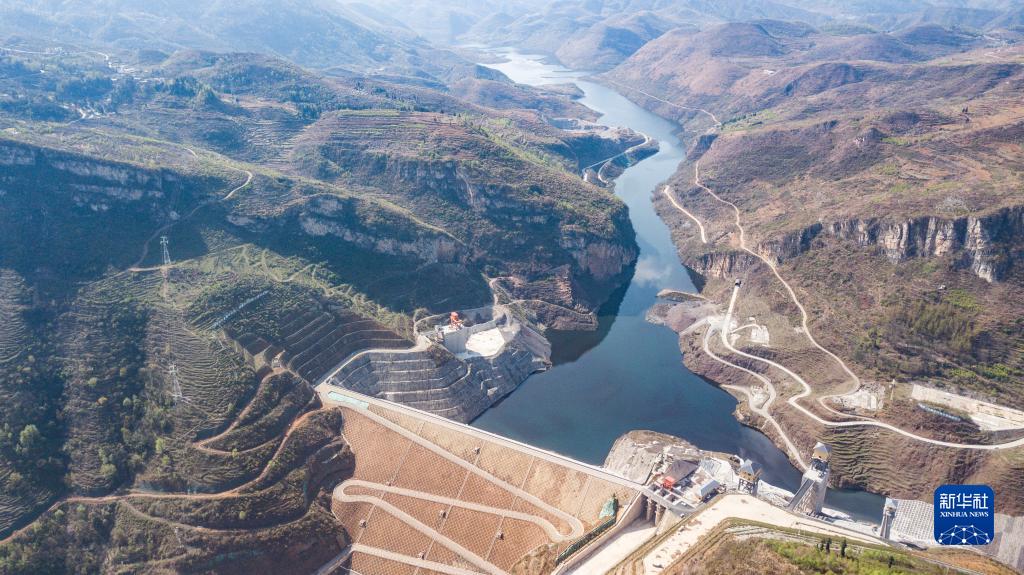 這是在位于烏蒙山區的貴州省納雍縣六沖河畔拍攝的夾巖水利樞紐工程(2022年3月17日攝,無(wú)人機照片)。新華社記者 陶亮 攝