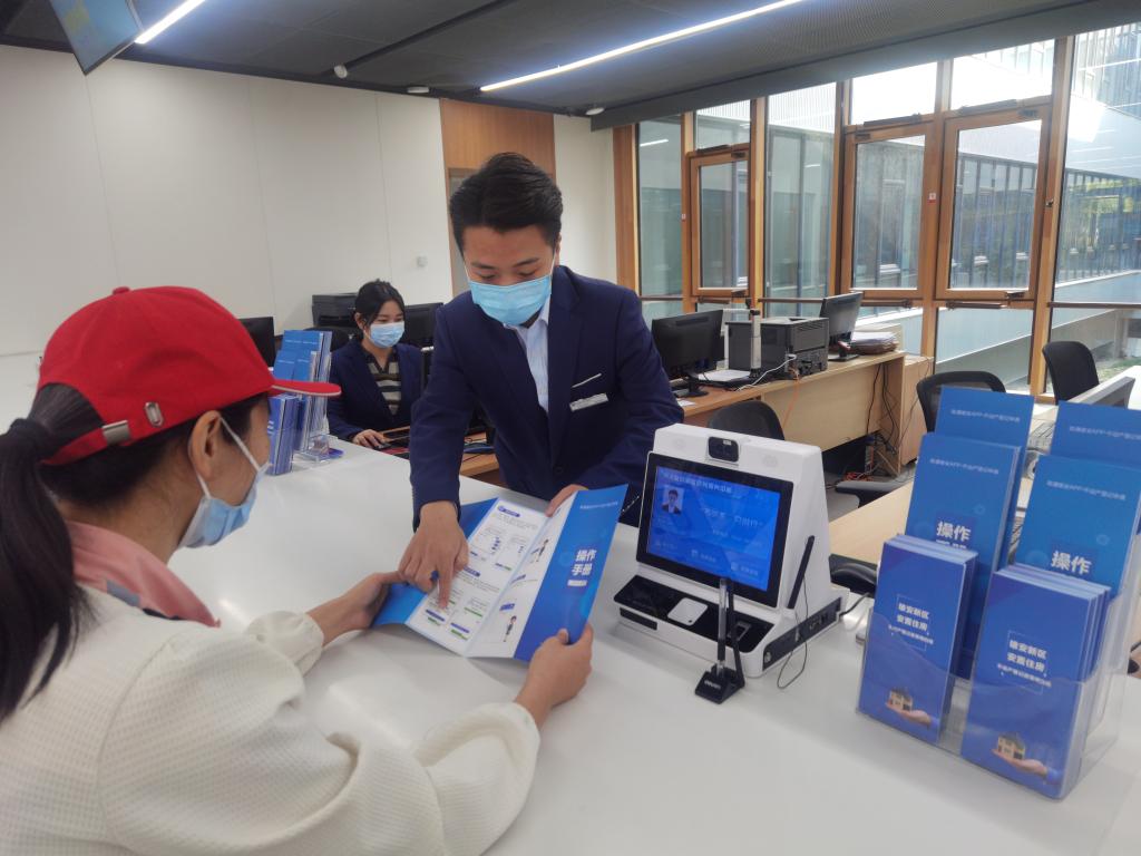 雄安新區不動(dòng)產(chǎn)登記中心工作人員為群眾解答線(xiàn)上操作申請流程。新華社記者 張瑋華 攝