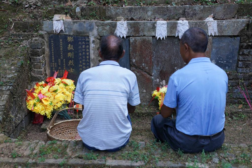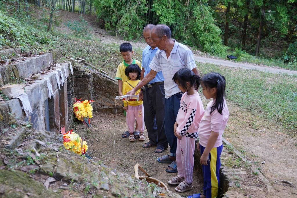 9月15日,謝南京帶著(zhù)家人一起為烈士掃墓。新華社記者 周密 攝