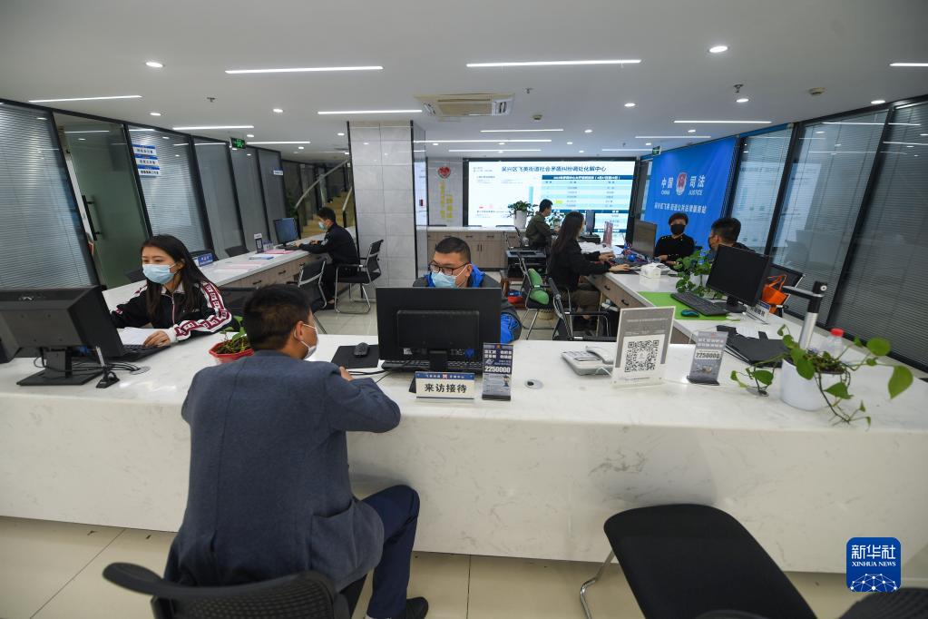 社區居民在浙江省湖州市吳興區飛英街道矛盾糾紛調處化解中心進(jìn)行咨詢(xún)登記(2022年4月28日攝)。新華社記者 徐昱 攝