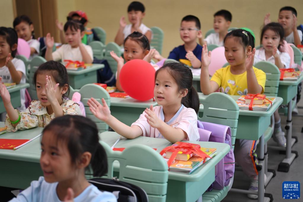 2022年9月1日,河北雄安新區容東片區容和悅容小學(xué)一年級新生在上開(kāi)學(xué)第一課。新華社記者 朱旭東 攝